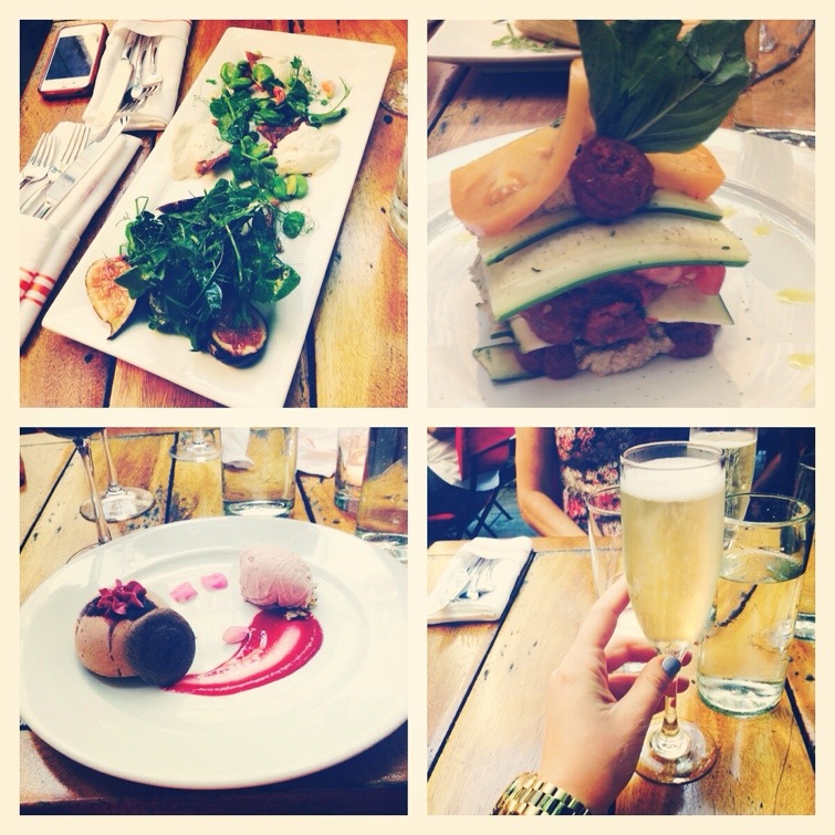 Aja, vi va på en underbar restaurang igår. Raw Food, o den hette ”Pure Food and wine” så himla mysig o maten va drömmen!