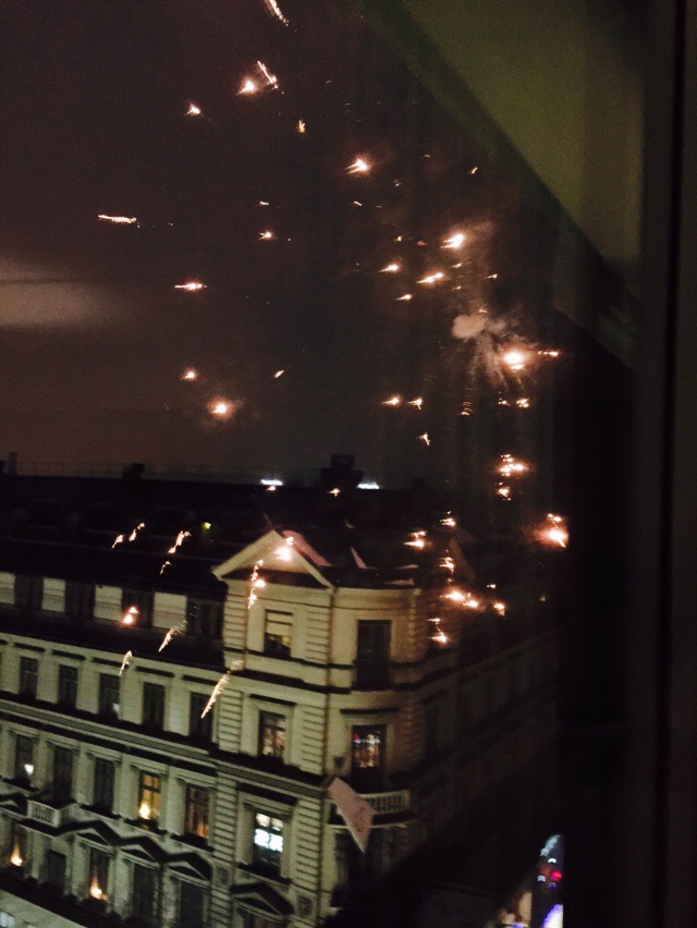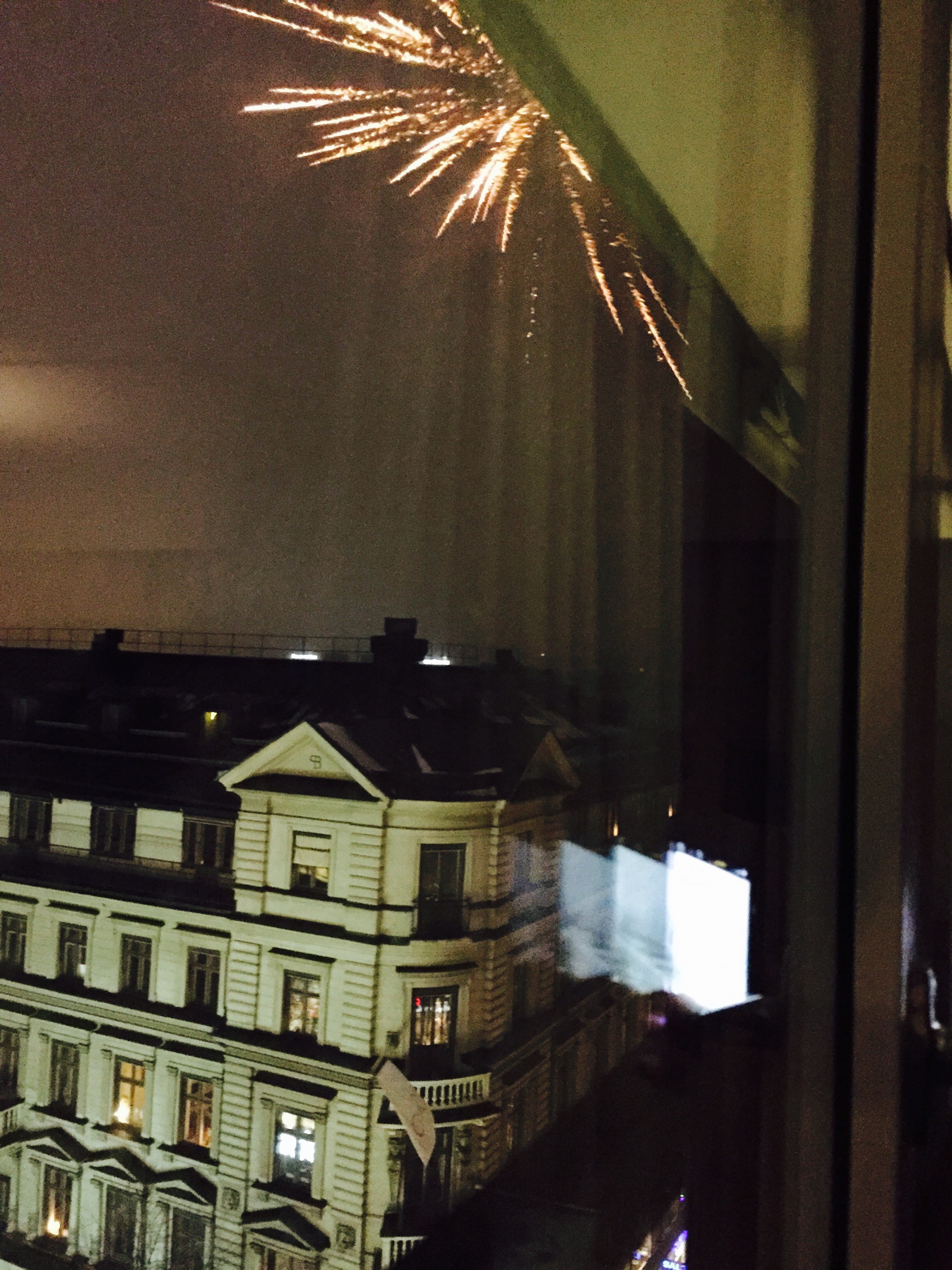 Hade bokat hotell med mitt i centrum och vårt rum överraskade! Sjukt stort! Haha så blev förfest och dylikt där.. Firade även in 12 slaget på rummet , högsta våningen så vi såg massa fina raketer! Perfekt 🙂