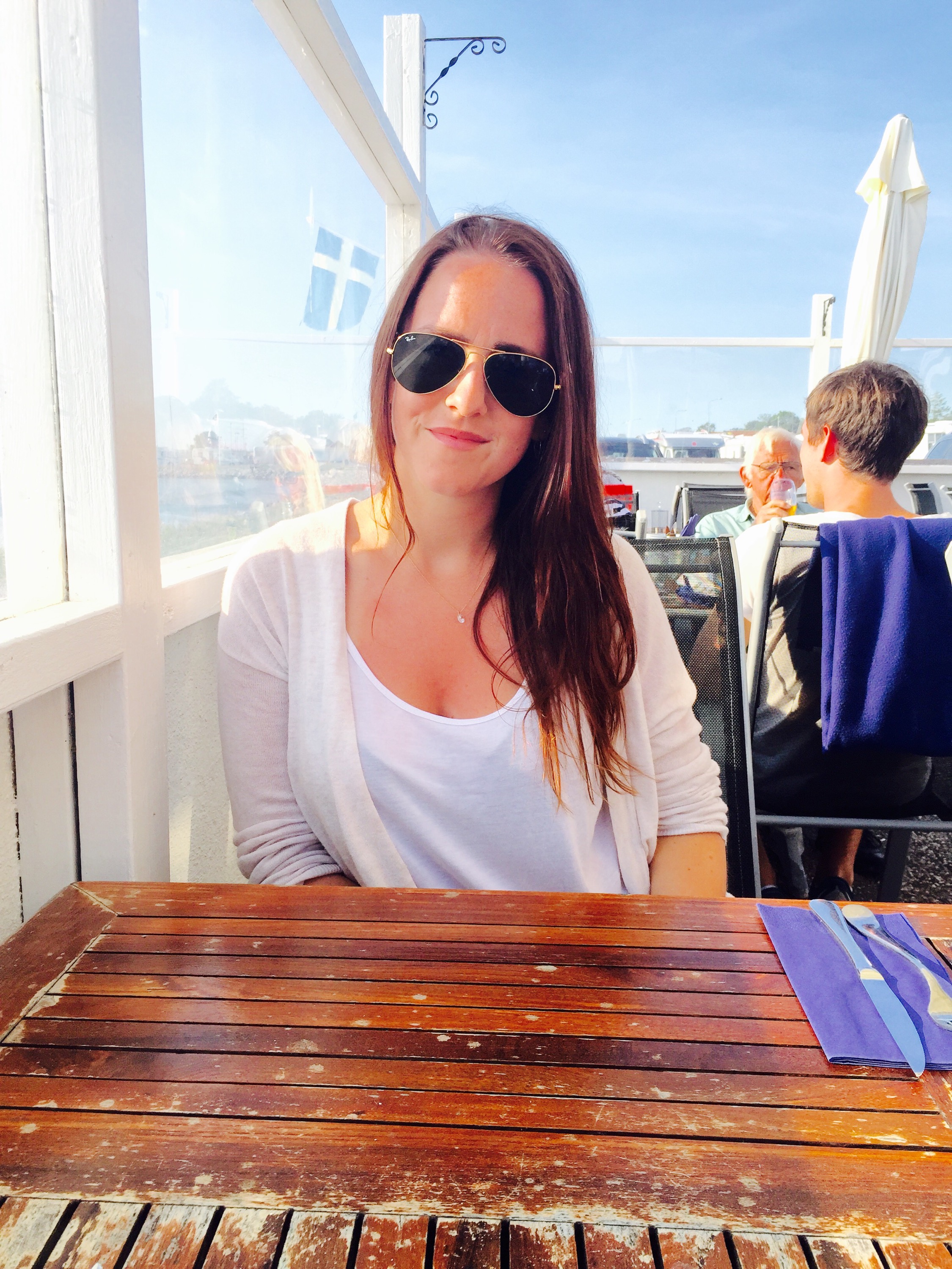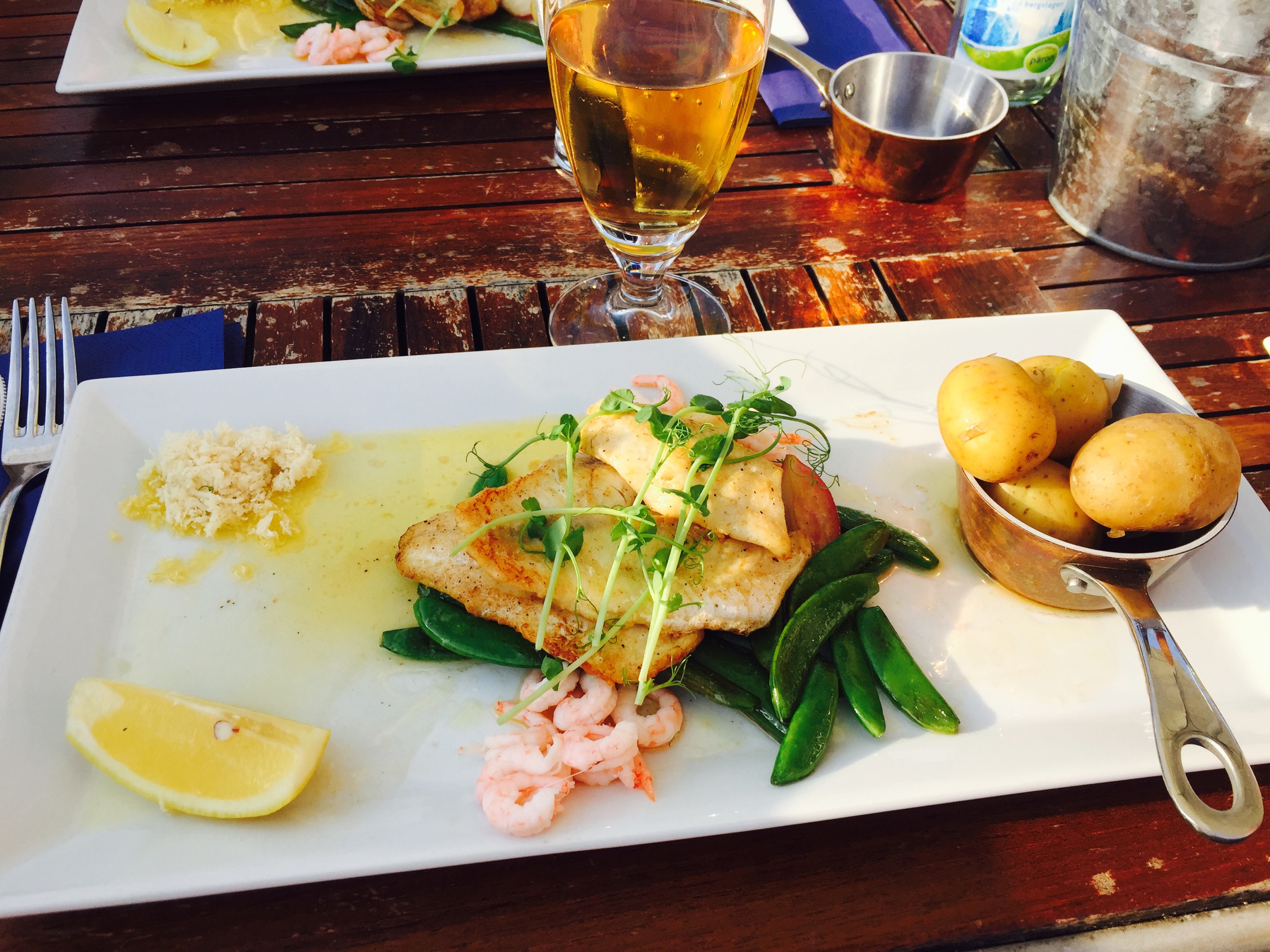Idag blev det middag vid hamnen. Åt godaste rätten; färsk abborre fiskad idag, med färsk potatis, räkor, pepparot och skirat smör! Dööööör