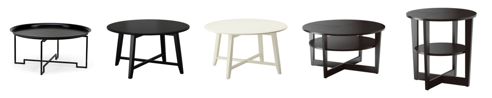 Dom andra är från Ikea, det sista hade jag tänkt ha mellan fåtöljerna. detta funkar dock inte alls längre!! Nu är jag inne på att ha typ en back eller något mellan fåtöljerna, kanske ett tidningsställ, men helst vill jag ha någon form av litet bord. Åtminstone avställningsyta. Tillräckligt för en tidning och ett vinglas 😉 Soffbordet är ändrat från runt till fyrkantigt och ska vara stooooooort. Å jag menar JÄTTEstort!! Typ 160*130… MAFFIGT! Funderar på att kolla loppisar efter något fränt matsalsbord och sedan kapa benen på det…