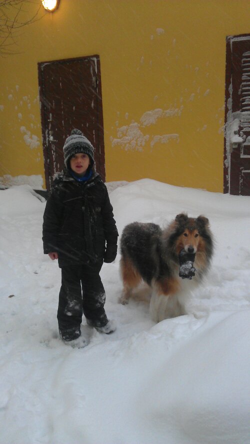 Jag , Figaro och Lasse begav oss ändå ut på en promenad i ett snöfyllt söder:)