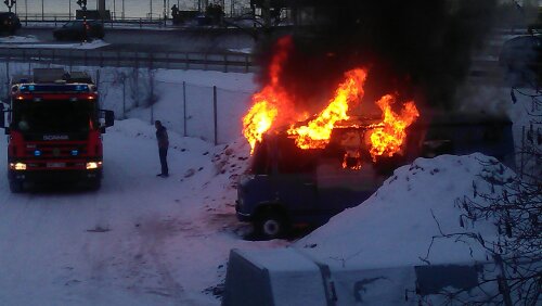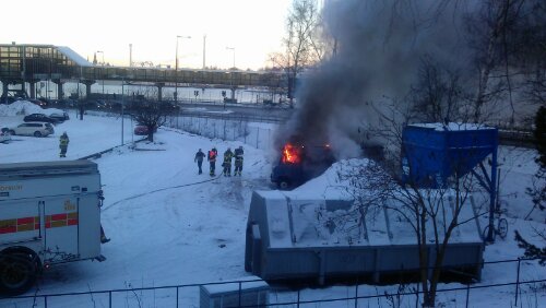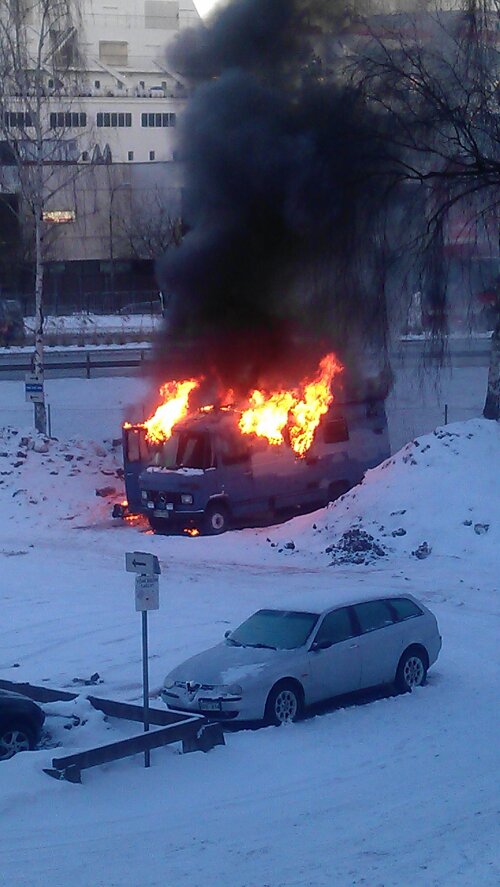 På parkeringen vid Vikingline terminalen såg det ut såhär!!! en minibuss stod i lågor och en stackars kille skrek och svor, hörde dock inte vad han sade men han var grymt upprörd. Tror detta var hans hem tyvärr:(