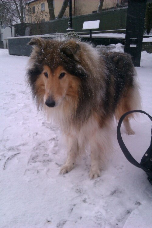 När Figaro är lämnad är det Lasses tur att få uppmärksamhet, det blir kast med pinne el kork och lite bus i snön…..