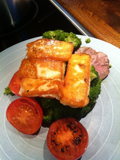 Till middag ikväll blev det lammrostbiff, broccoli, hallomi och tomat, mums!!