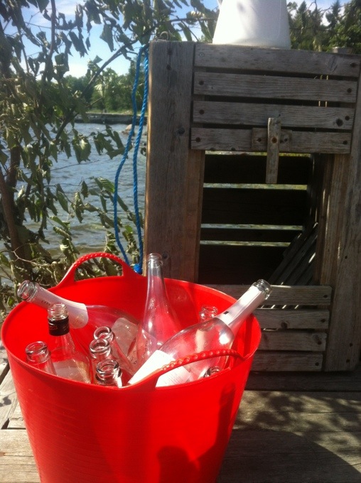 fina vänner. Att stå på bryggan och vinka hejdå efter en kanon