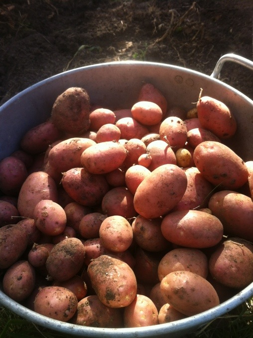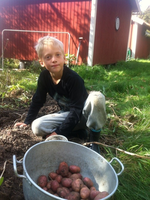 Jag och Figaro hjälptes åt att ta upp året potatis skörd, bästa Kobben potatis!!!