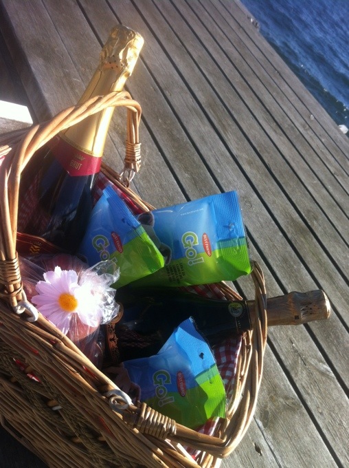 I helgen var det även dax för väninnan Catherines tjejhelg och jag packade korgen med det viktigaste, bubbel till tjejerna och godis till vovvarna( vad mer behöver man:)?