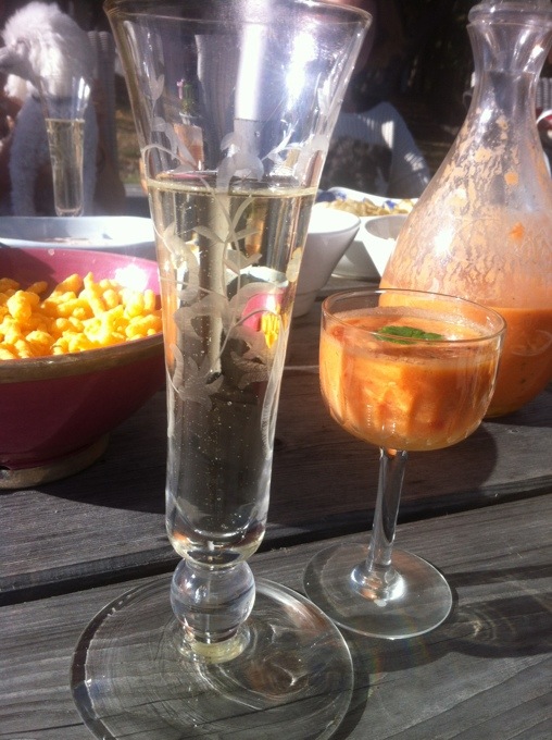 Snacka om att prioritera! Stort glas bubbel & Litet glas Gazpacho 🙂