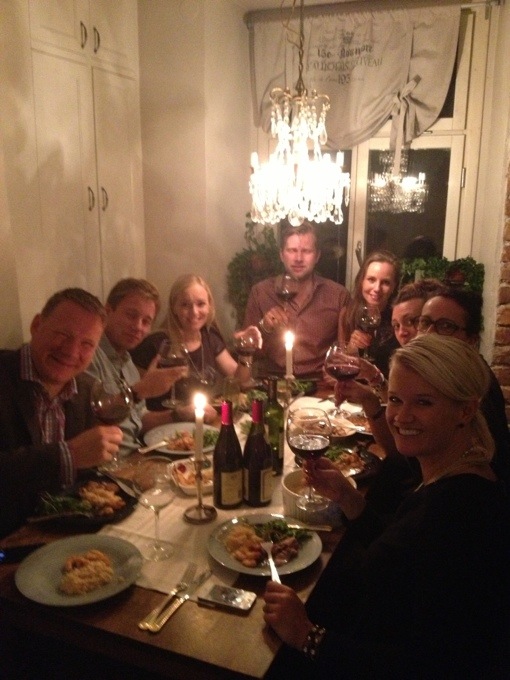 Fullt blev det i vårt lilla kök när vännerna Johan o Camilla , Niklas o Lisa, Christer o Tess och Camilla kom för att fira Gert som fyller på Måndag:) Jag verkligen älskar när det är fullt av sköna skratt och prat i vårt kök och när jag får veva runt i grytorna:) tack fina vänner för att ni finns:) kram