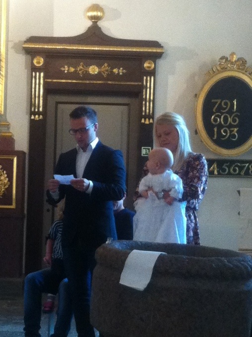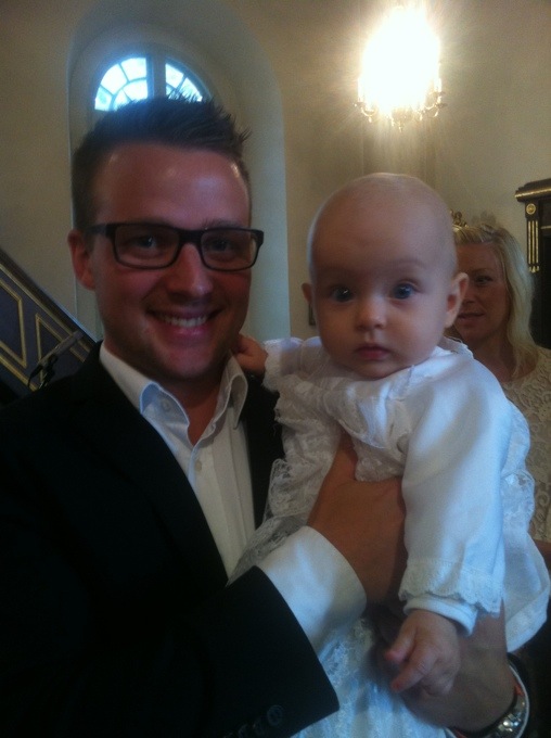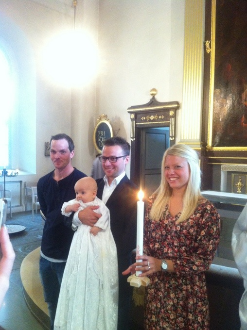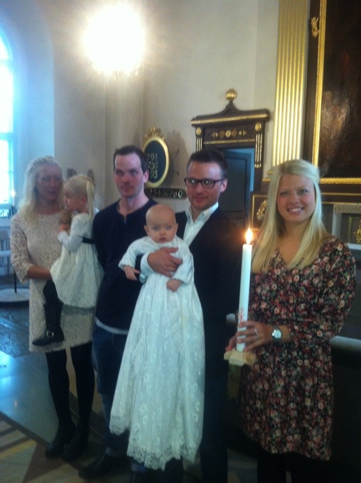 Från väster min bror Daniel som är Gudfar till Elsa, Micke med Elsa i famnen och vackra mamma Ida:)