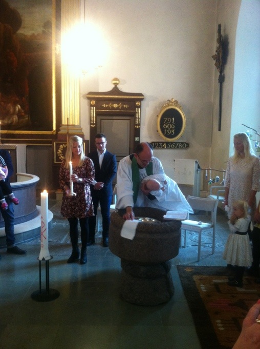 Det var dags för dop då min lillebror Micke och hans Ida´s lilla Elsa skulle döpas. Vackert som alltid och det är faktiskt trevligt med ett kyrkbesök då och då. Kyrkor är vackra tycker jag och är jag utomlands så går jag gärna in och kikar i kyrkorna, men det är sämre här hemma tyvärr! Krävs något speciellt som dop, bröllop, konfirmation el begravning. Det är alltid roligt när familjen samlas och alla syskonen med barn var på plats i Norrköping för ELSAS´s fina dop.