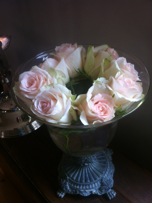 Såhär brukar jag göra när mina rosor börjat slokna. Jag klipper helt enkelt av dem och lägger dem i en skål med vatten:) huxflux så får dom nytt liv och står ett bra tag till:) Dessa vackra fick jag av herr o fru Modig som var på besök på kobben förra helgen:)