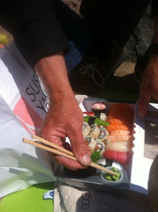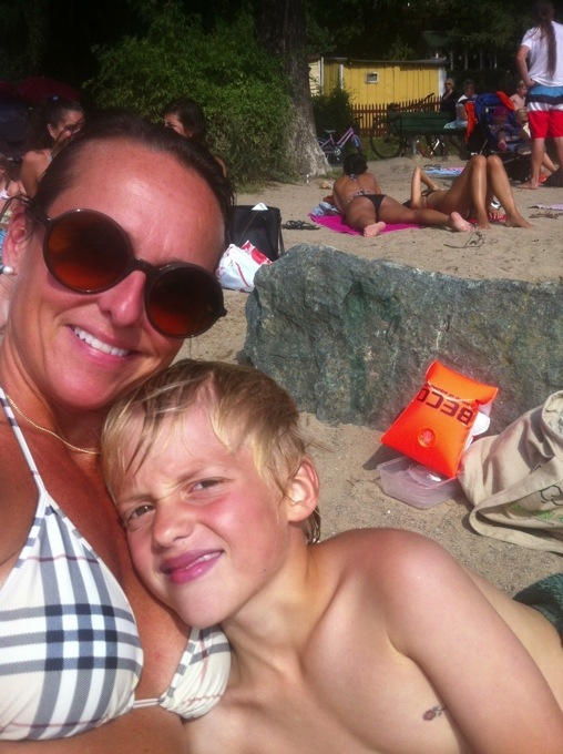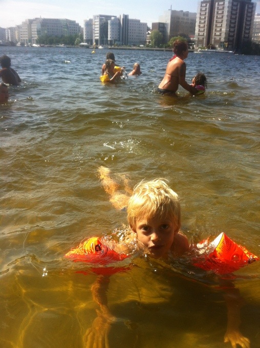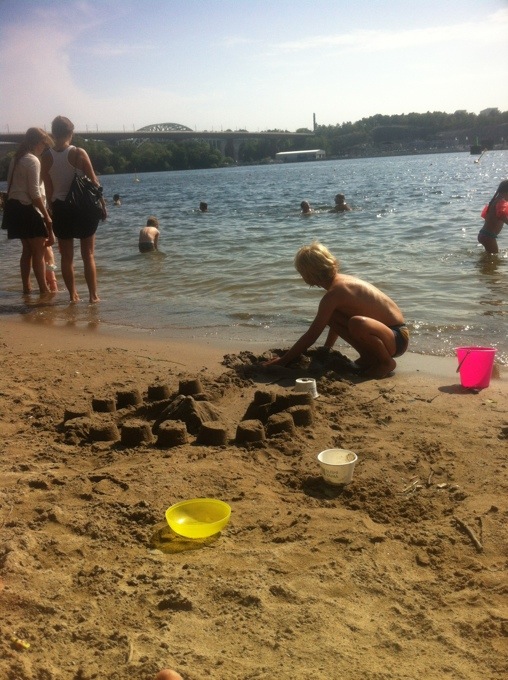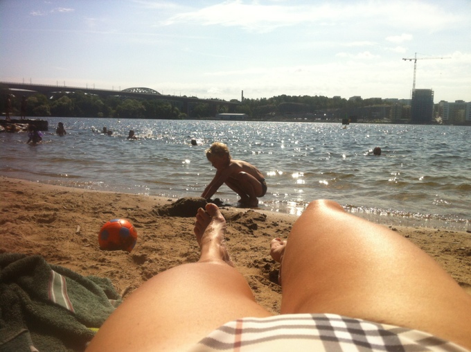 Ja det är ju fantastiskt med Stockholm och allt vatten. Promenad avstånd från ett pulsande Söder ligger bland annat Tantolunden med badplats och här har vi nu varit två dagar på raken. Jag är inte så mycket för att bada själv men ligger gärna på stranden o solar. Figaro badade glatt och vi byggde sandslott. Lyxigt värre då Gert dök upp efter radiosändningen med sushi till lunch;)