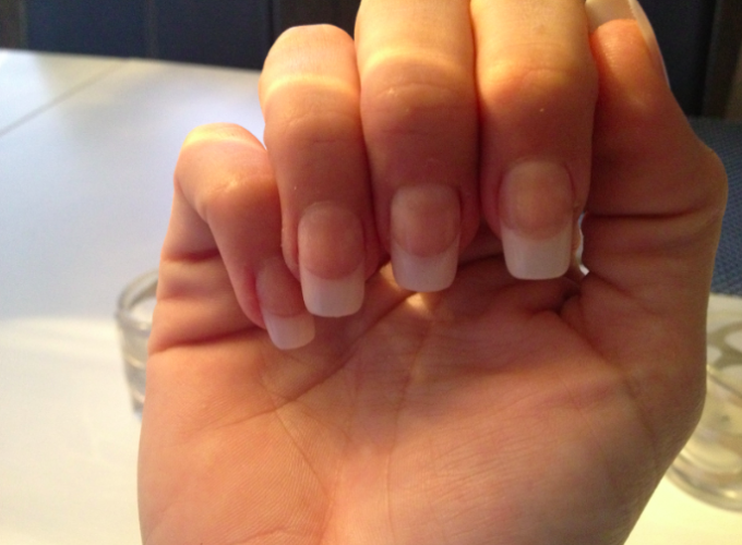 Snygga naglar behöver inte kosta mycket. Du får nog lägga 500-600:- för ett nytt set om du gör det på en riktig salong. Jag gjorde det första gången i somras då jag ville ha fina naglar inför vårt bröllop. Visst höll det ett tag och jag blev jätte nöjd, men mindre nöjd när dom sen började växa ut. Jag tog bort dom helt när jag kom hem men hade då ”ränder” kvar på den riktiga nageln från den tidigare kanten. Inte alls snyggt och mina naglar blev jätte sköra efter det. Jag har hittat ett bättre alternativ! Om man inte av naturen har lätt att hålla naglarna långa och starka. Jag har det inte då mina naglar ryker rätt lätt på träningen bla.