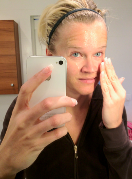 Rengör ansiktet ordentligt innan. Kändes sen inte jätte mycket att det skulle bli nåt när jag la på den, syntes inte heller, mer som en genomskinnlig kräm, men sen vet du, när den stelnade efter några minuter! 🙂