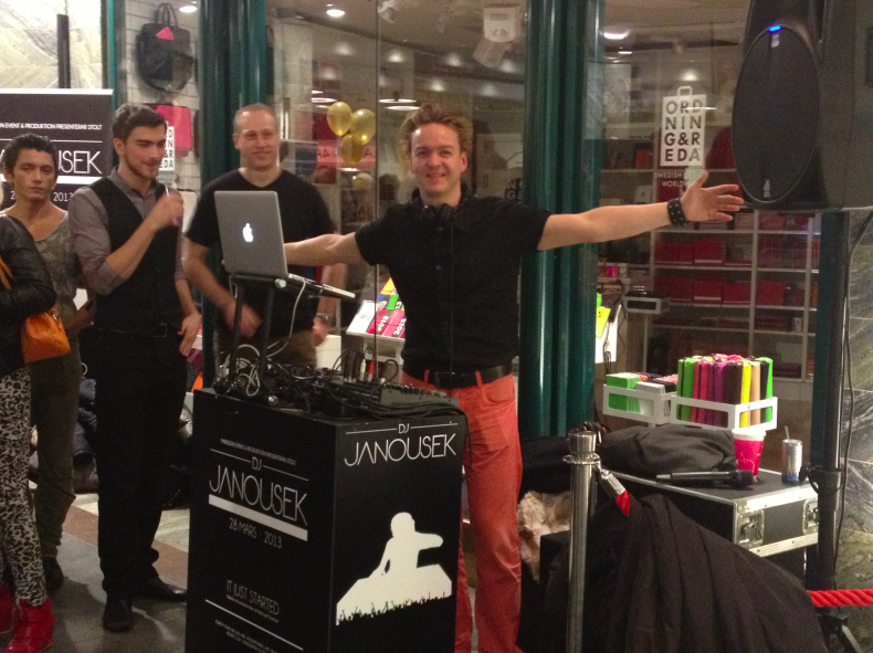 Jag blev glatt överraskad att Frasse min vän och gamla kollega från MTG Radio stod bakom DJ båset ikväll, redo att spela för modevisningen! 🙂