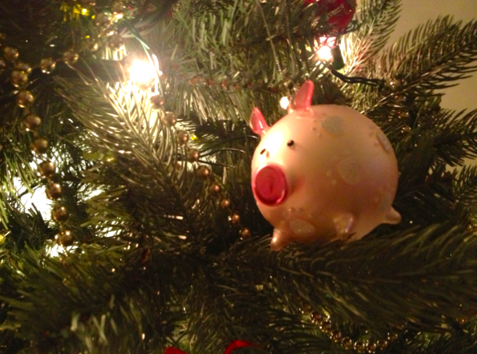 Vår gran är inte riktigt som alla andras. Jag har en gris jag, eftersom jag samlade på grisar när jag var liten.Den historien tar vi en annan gång. 🙂