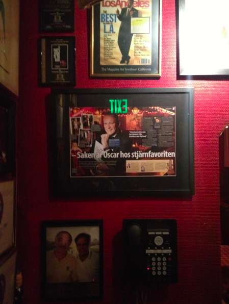 Vår goe vän Fylking Sverige, Gert, har sin son Christian boendes här i L.A. Christian är chefskocken på den kända krogen Dan Tana´s i West Hollywood, en restaurang med goda recensioner men bästa rekommendationen är ju från Gert själv och att det är hans son som jobbar här så för oss var det en självklarhet att gå hit under fredagskvällen och äta, oavsett hur restaurangen skulle vara. Det visade sig var en fantastisk restaurang! Fullsmockad och riktig god stämning, toppen service och fantastisk god, italiensk mat. Tyvärr var Christian ledig just idag då han fyllde år igår men kul att ha varit här. Vi saknade Fylkings väldigt mycket bara, och skulle verkligen ha haft dom med denna kvällen! Önskar ni var här! 🙁
