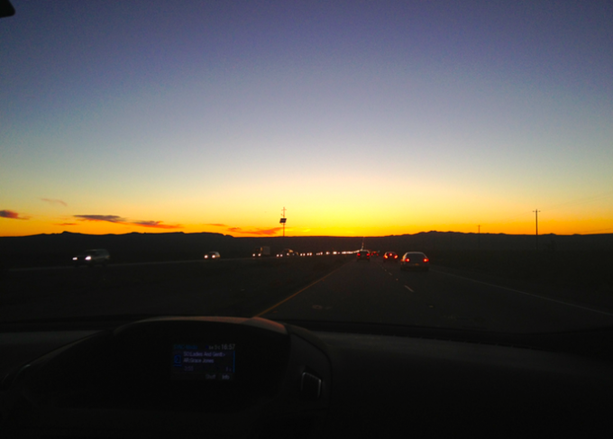 Fantastisk fin väg hem från Las Vegas till L.A i solnedgång. Vi är hemma igen i L.A efter en magisk helg i Vegas. Jag kommer somna med ett leende på läpparna ikväll. 🙂