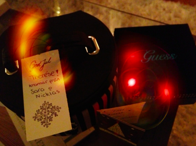 Fick jätte fina presenter av Sara och Nick! Ett jätte fint smyckeskrin av Thomas Sabo – en favorit då jag har många smycken och berlocker i Sabo kollektionen, flitigt samlat i många år, så blev positivt överraskad att han hade smyckeskrin! Det visste jag faktiskt inte! Sen ett väldigt fint guldarmband från Guess. Två klockrena väldig ”Tess”passande presenter. Mitt i prick! Tack SNÄLLA Sara och Nick! 🙂