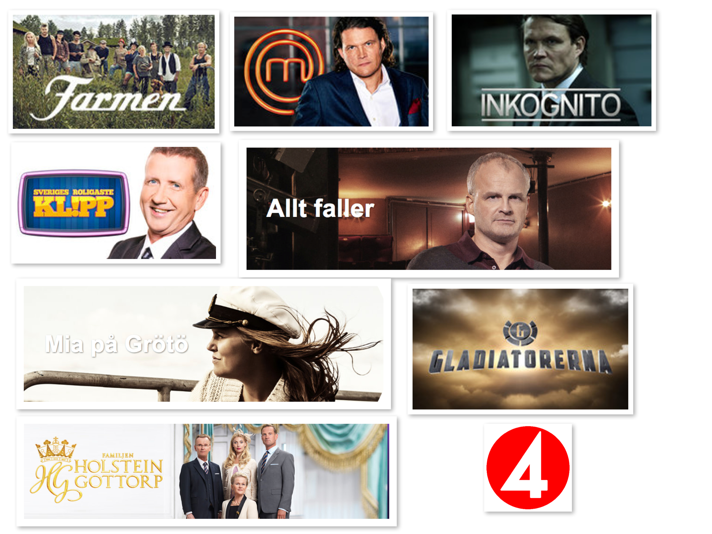 Farmen är tillbaks! Fantastiska tittarsiffror igår! Mästerkocken följt av mer Moberg med nya Inkognito! Martin Timell med nytt program, start ikväll med ”Sveriges Roligaste Klipp! och sen! ÅH vad jag vill att du inte ska missa denna! Rheborg, Jonas Gardell och Henrik Schyffert som spelar sig själva i en riktig kvalitets, tung drama. Det vi har fått sett så ryser jag, fantastiskt bra manus, nära, äkta och jag blev helt biten! Allt Faller – Torsdag TV4 21:00 där du får två avsnitt direkt efter varandra! Det kommer bli min favorit, delad plats med fantastiska Mia på Grötö där Mia Skäringer , känd från bla Solsidan, bjuder in gamla vänner och nya bekanta till sitt eget hem i Grötö i Göteborgs skärgård. Fantastisk miljö med artister som Danny, Peter Jöback, Felix Herngren mfl. Kommer bli min andra stora favorit nu i vår. Onsdag 16 januari 21:00 Tv4!