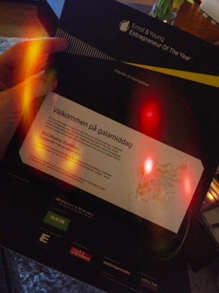 Idag blir en spännande dag! Jag ska få gå på Entrepreneneur Of The Year som Ernst & Young arrangerar. Det blir dagaktivitet först på Elite Hotell sen final på kvällen, middag i Stadshuset, där Sveriges främsta entreprenör ska utses. Ser verkligen fram emot dagen och framför allt galakvällen då man inte får äta middag i Blå Hallen varje dag! Angenämt! 🙂 Så det blir mingel och att hålla TV4 fanan högt! 🙂