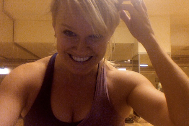 Bench pushups chest och sen triceps. Ha brädan på lägsta nivå. Om du inte är väldigt lång, höj den ett snäpp. Lätt i början kan tyckas men sen är man inte jätte kaxig i andra settet! 🙂