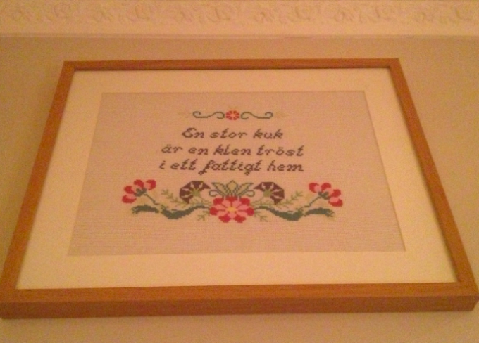 Ja, som sagt, vem kan bo här, med denna unika, broderade tavla på väggen? Gert Fylking så klart! 😉