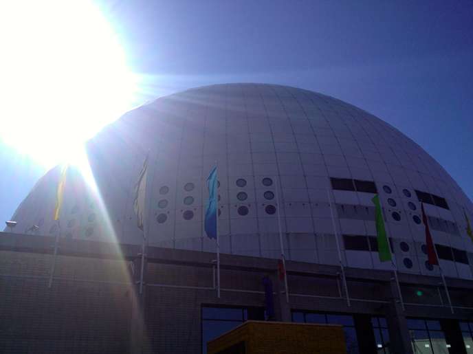 Idag sken solen över Globen! Jag åkte ner för att kika lite på audition för IDOL som började igår. Och kände direkt stämningen när jag hoppa ur bilen. Mötandes av massa ungdomar som kom med gitarr på ryggen, sjungandes, glada, energiska. Kunde inte låta bli att le för mig själv. Och tryck var det inne på området också. Överallt stod folk och sjöng och laddade för sig själva och när jag gick på toa så var det en tjej som sjöng loss rejält bredvid mig att jag knappt kunde gå därifrån. Hon lät riktigt bra! Och smart att sitta inne på toan, bra akustik! 🙂 Energin sprakade, trots den långa väntan för samtliga. Ja, jag såg någon sitta och sova också faktiskt, fullt förståerligt! 😉