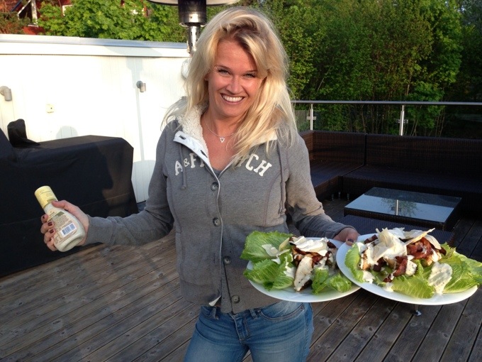 Äntligen! Äntligen kan vi sitta ute och äta! Solen tillåter middag på takterassen ikväll! Ååå! Underbart! 🙂 Love making dinner to my husband så det blir Tess Cesaer Sallad, klassikern ikväll, igen, har jag skrivit om den innan eller?! 🙂