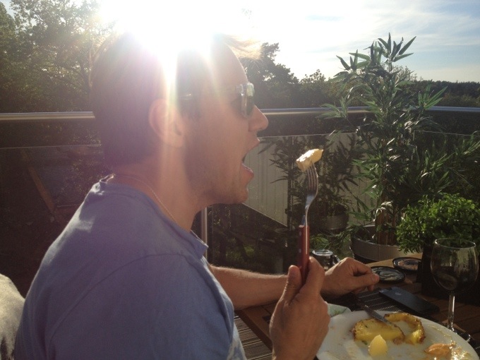 Fina om fötterna och heldag på stan så väntade Christer på oss på terassen när vi kom hem! Vilken dag! Högsommar! 🙂