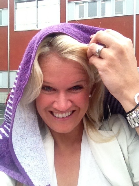 Singing in the rain 13 jun 2013 av Therése Modig Alltid bra att ha en SATS handduk i väskan, om det börjar ösregna, om man saknar paraply!:)