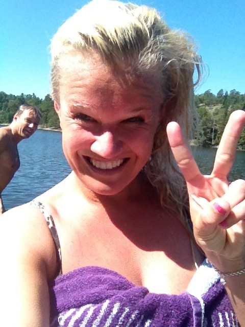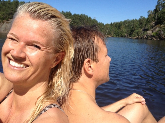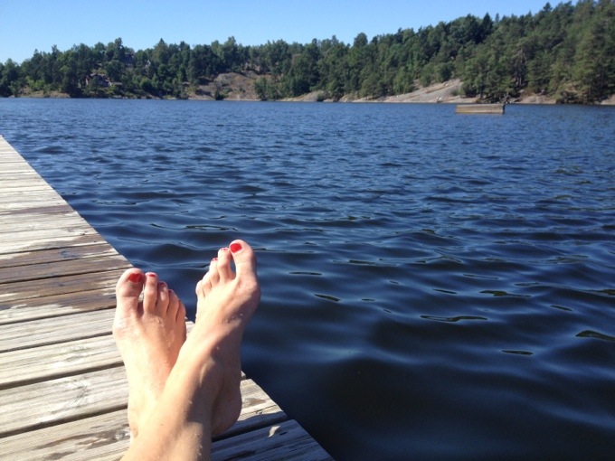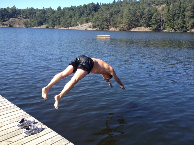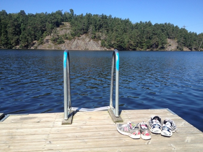 Belöningen kom efter. Vi sprang rakt till sjön och kastade oss i. Bilden som jag hade hela tiden framför mig, sen jag stod där i hallen och knöt skorna, på löpspåret, i uppförsbackarna. Sjön, tänk på sjön, tänk på känslan, efter löprundan, när du kastar dig i! Målbilden! Magiskt! Så tips när det känns tungt, ta just fram bilden av hur det kommer kännas efter! Det funkar! Den använder jag i städning med tex, eller i helgens trädgårdsfix. Tänk på hur fint det kommer bli efteråt, när du är klar. Det är nog det som driver mig i det mesta. Målbilder. Tydliga sådanna och stora som små. Till vardags som till framtid.
