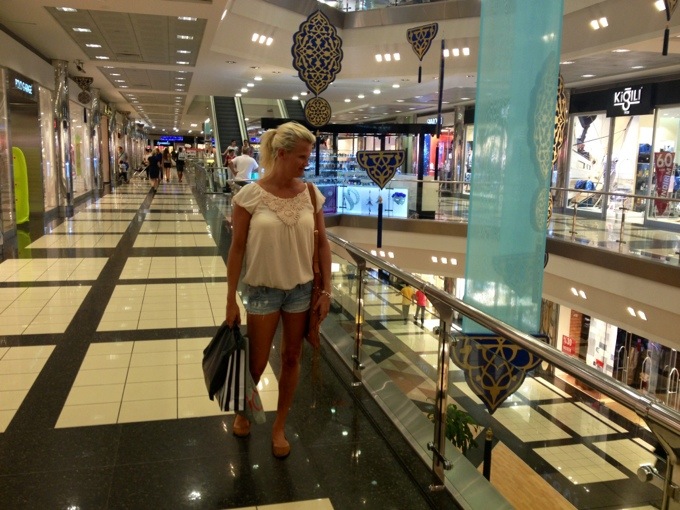 Det är stort utbud av shopping i Antalya. Men som jag skrev tidigare är det mestadels kopior inne på basarerna där du hittar väskor, skor, kläder i alla tänkbara märken men du kan också hitta läder, kryddor silver och smycken som dom är riktigt duktiga på och billigare än hemma. Vi provade på galleriorna igår där den som sägs va bäst ligger precis i närheten där vi bor, Migros. Och Migros var kanon. Tre våningar, rent och fräscht med coola butiker men också butiker du kände igen som Zara, Nike, Mango, Guess mm. Det blev några påsar med hem för både mig och Christer som jag får visa senare. Nu ska vi ner till poolen! 🙂