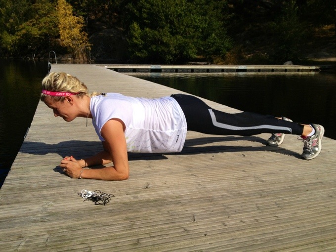 Vanliga crunches, planka och sidoplanka känner jag är rätt skönt att avsluta med. Då känner jag mig komplett, även fast löpning i sig är bra magträning.