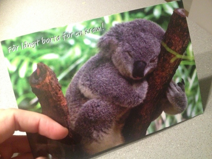 Mamma med sina söta kort hon alltid skickar som vi blir så glada för! För visst är det roligt att fortfarande få riktiga vykort! Jag måste bli bättre på det, skicka fler kort! 🙂