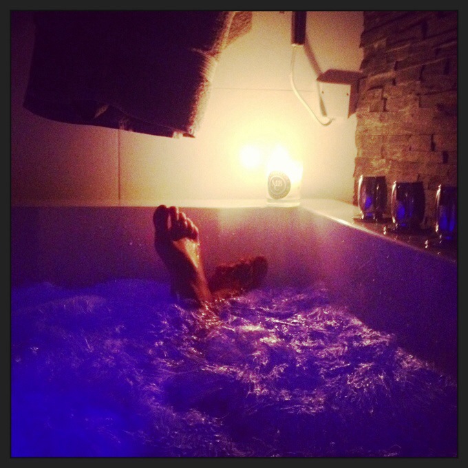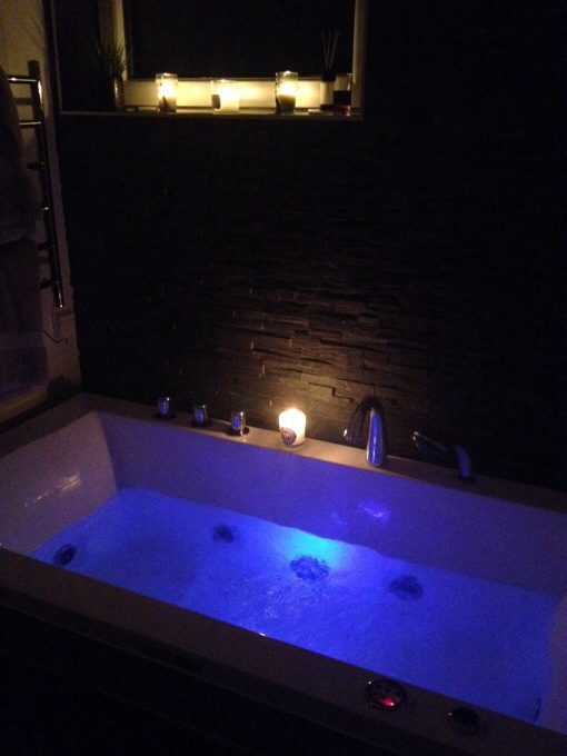 Bild innan Christer gjorde kanonkulan ner.:) och ja, vi har discoljus i vår jacuzzi i olika färger! Woop woop!:)