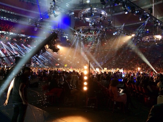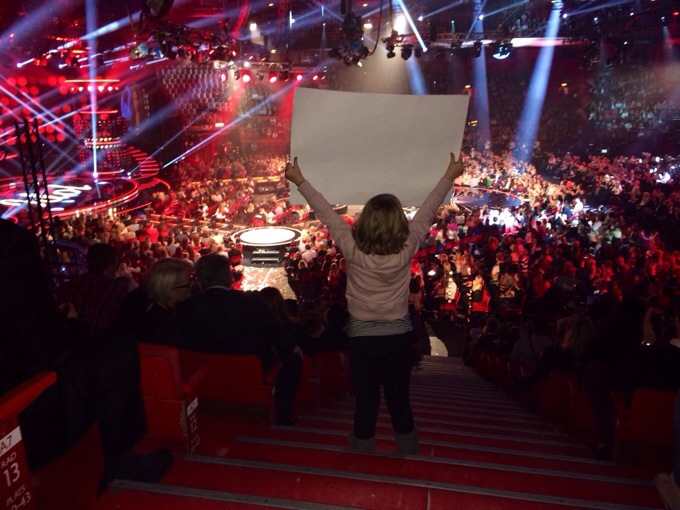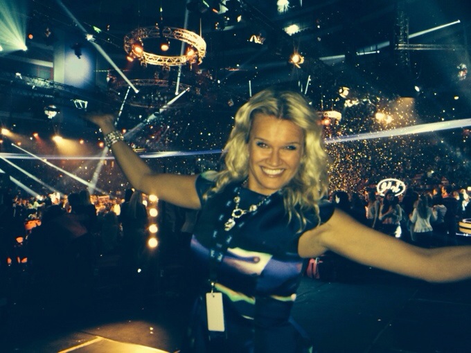 Hur söt var inte den här tjejen då som vi hittade när vi sprang runt då jag rörde mig överallt under kvällen. Högt upp med sin fina skylt hon gjort för Kevin som hon sprang ut med så fort Kevin sjöng! Sötis!! Engagemang! 🙂