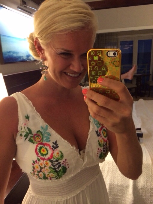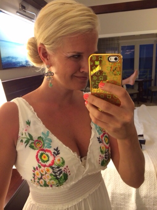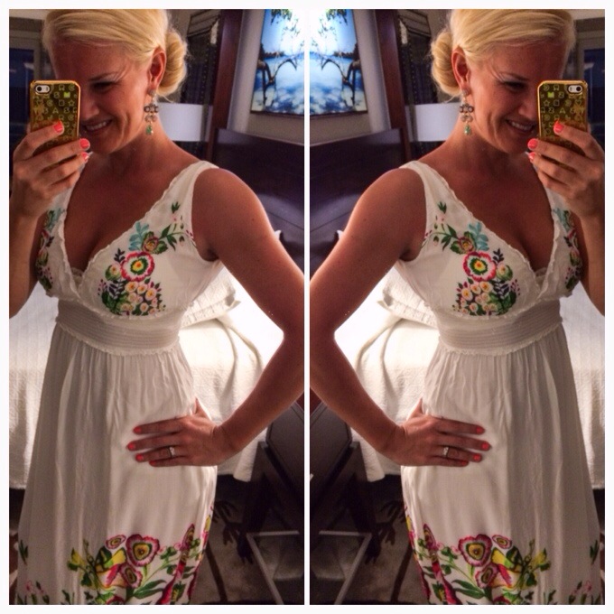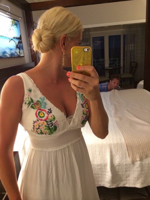 Superläcker, vilken snygg klänning !!!!!!! Allt klär en skönhet och solbrännan är så vacker. Ha en fortsatt skön semester. Sverige har i alla fall lite sol nu, men blåser gör det som vanligt.