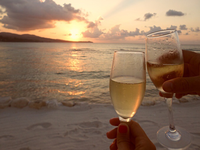 Något vi alltid gör, tar med oss två egna flaskor champagne på resan, en att börja semestern med och en som avslutar. Ikväll tog vi med oss sista flaskan ner vid havet, i solnedgång. Sista kvällen, vilka veckor vi har haft! Magiskt!