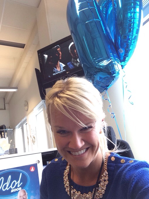 Mötet gick så himla bra! 4 timmar med kreativitet, energi, glädje, agendan flöt på, med första preview hur det kommer se ut i höst som Pelle vår Exekutiva Producent bjöd på. Så tacksamt, jag skrattade så jag grät! Ett peppat gäng, med alla mina eminenta kollegor som stöttade upp. Jag älskar verkligen det här. Otroligt nöjd över dagen och känslan ni vet när man haft en stor fest eller middag hemma, när sista gästen har gått, och man slänger sig i soffan och andas ut! Så, så kände jag vid kl 15 idag när vi var klara. Jag gick med ett leende på läpparna tillbaks till min plats. Med ballongerna i min hand. Så nu ser det ut så här där jag sitter, stora heliumballonger i luften! 🙂