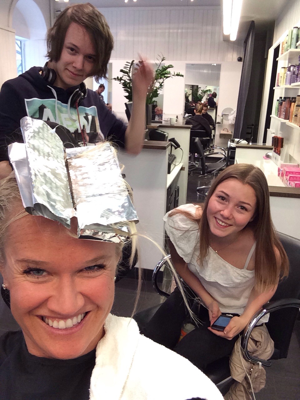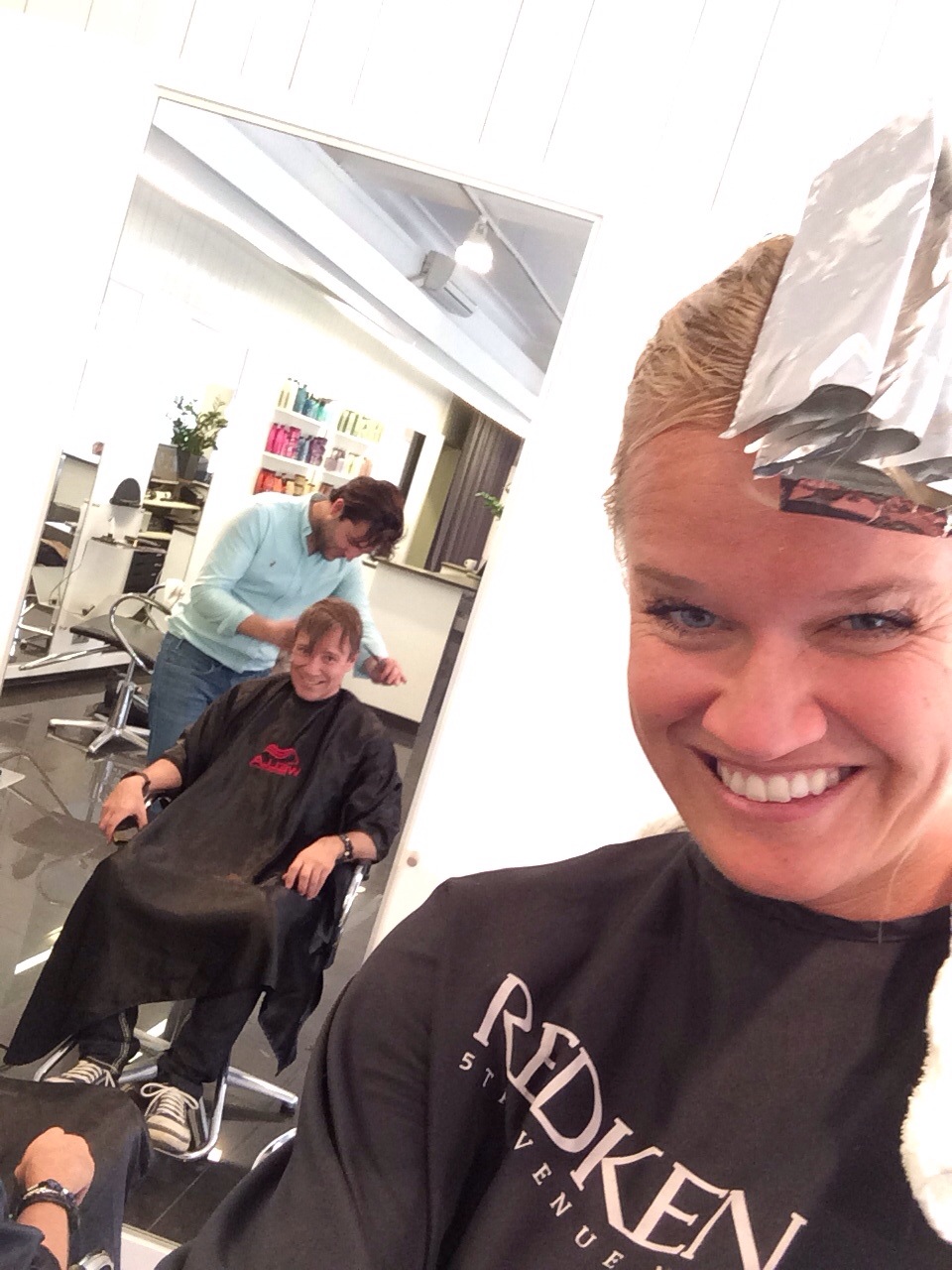 Kul för Christer kom också bort med Sara och Nicklas och passade på att även han klippa sig så Divo hade full rulle mellan mina slingor! Haha!:)