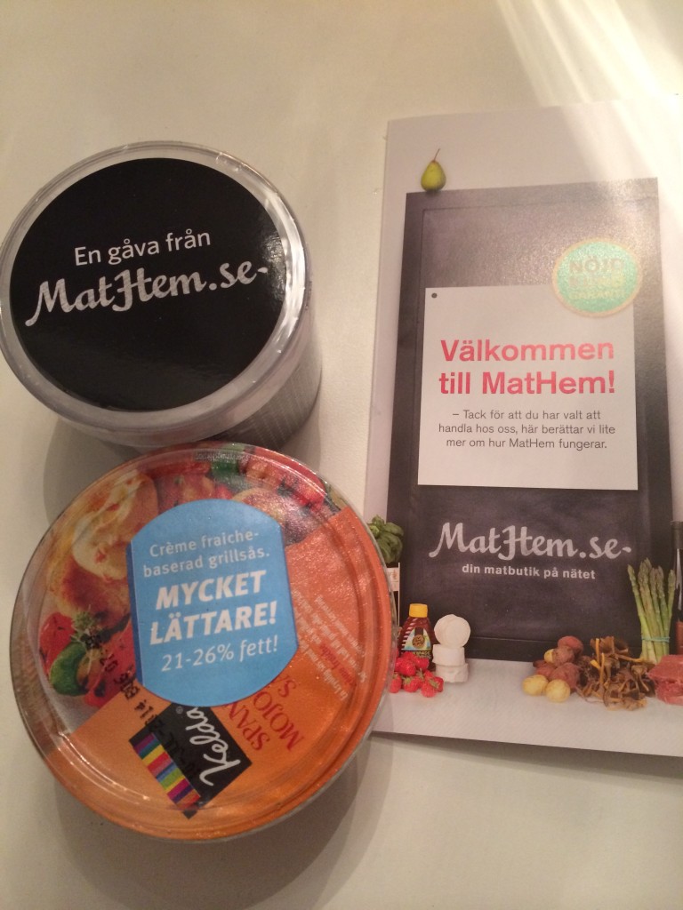Det är ju JUST det här jag menar! Som jag skrev igår! Efter lång arbetsdag, träning, klockan hinner bli åtta, trött och hungrig innan man hunnit hem OCH så lite spöregn på det..och du måste handla..då är i allafall inte jag jätte sugen på att svänga in och storhandla, fast det måste ju göras men nu är jag så sjuuuuk nöjd, då jag, som jag skrev om igår, precis fått vår första beställning från Mathem som jag äntligen provat på! 🙂 Som jag beställde från poolkanten i Rom i går jag skrev om i tidigare inlägg. Det kom idag, på utsatt tid! 🙂