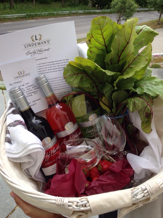 Veckas finaste. Vilken överraskning! Knackade på dörren och möttes av detta söta, glada bud! Lidemans överraskade med en fullpackad somrig picknickkorg! Så fint! Med deras tre senaste viner där det satsas på den nya trenden, vin med lägre alkoholhalt och kalorier! Fantastiskt! Ett Sauvignon Blanc, Rosé och ett Shiraz. Det kommer följa med ut till skärgården i midsommar! 🙂