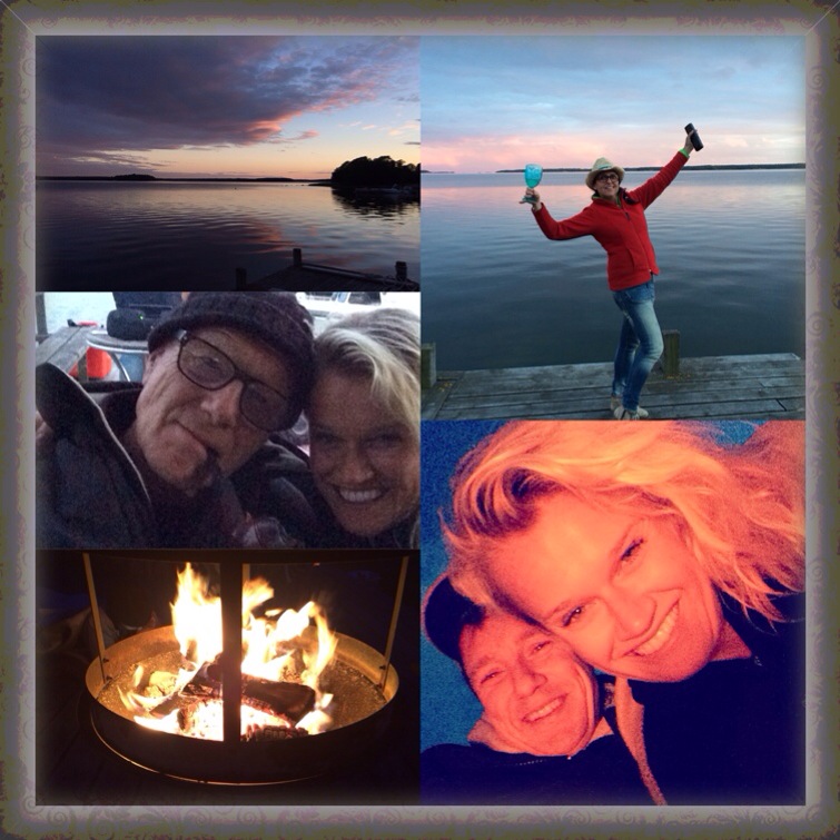 Gert kom och hämtade oss med båten sen var det full rulle med lunch på bryggan,bad i uppvärmd badtunna, senare middag och brasa till småtimmarna där kvällen och natten blev väldigt vacker under stjärnklar himmel i goda vänners lag. Så vackert här!