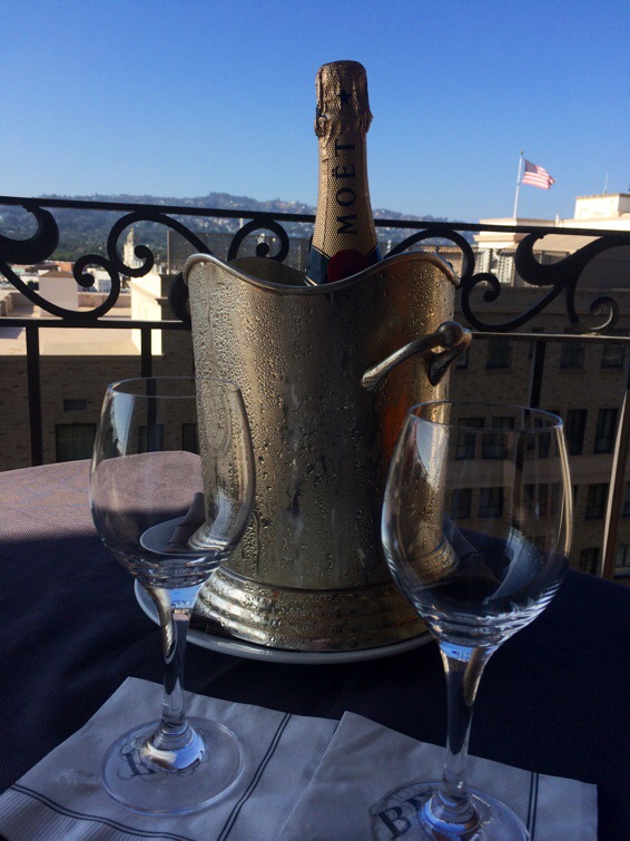 I år står jag för fixet av vår bröllopsdag. Beverly Wilshire är en del som jag har bokat och på kvällen har jag bokat bord på en riktig häftig restaurang här i Hollywood/Beverly Hills,hoppas jag, som jag hittade på Isabella Adrians blogg som hon tipsade om. Den borde vara bra och Christer har ingen aning.:) Först champagne på rummet. Moët så klart som är vår ”TEMO” champagne. Lite ”vår” då det just är våra bokstäver om du kastar om dom! TËMO 😉 TEMO som vi sagt från dagen vi började träffas Therése och Modig. Nu är jag ju blivit Therése Modig med!:)