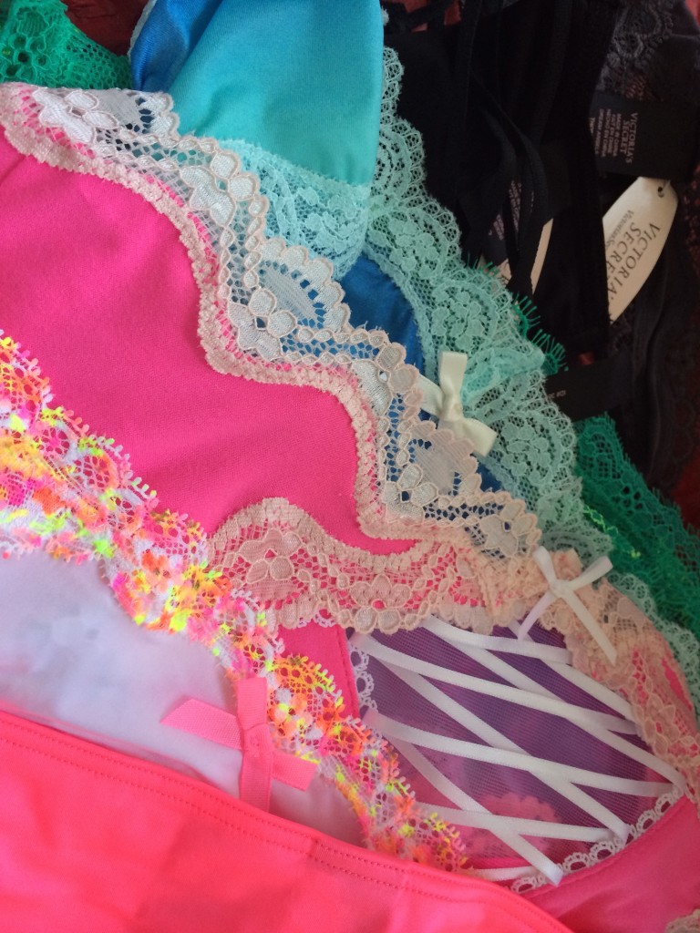 Jag gillar fortfarande Victorias Secrets underkläder. Jag har tröttnat lite på alla dofter och accessoarer, nog för jag sprungit här en del då det är mer vanligt nu med butiker på diverse flygplatser sen har det blivit en del dom gånger vi varit i USA nu. Men underkläderna och även bikinis är för mig en fröjd då dom alltid har alla modellerna i alla storlekar. Du har alla alltid snyggt sorterade i lådor under som du bara drar ut där din storlek står angivet, så ligger alla där, så det är inte som hemma, när på H&M tex bara finns upp till en viss storlek, eller du i annan butik ser något snyggt men det görs inte ens i större än C-kupa tex. Konstigt tycker jag, vi måste ju vara en del som har större bröst än så..nä då gör man andra modeller som ser ut som värsta tant-bhar i halvsexigt enfärgade material. För att inte tala om bikinis där det värsta jag vet är när bikinis kommer som set, där du tvingas köpa samma storlek i topp som byxa. Hur många passar det liksom? Jag drar själv rätt mycket om rygg och byst och mindre om baken så jag måste ha två helt olika storlekar. Så därför älskar jag att komma in här där allt finns, oavsett storlek och samma för alla modeller. Och tveka inte att få hjälp med ditt mått då dom gärna hjälper till så du får rätt storlek.