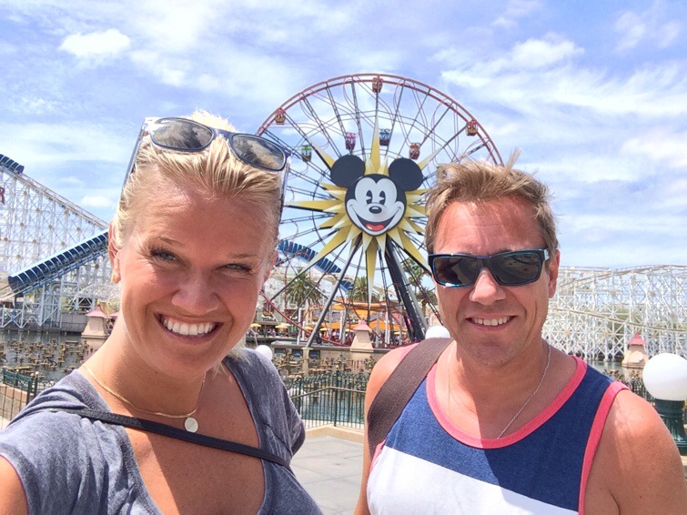 Stuck in a Moment You Can’t Get Out Of – U2. Jo den hade vi ju kunnat nynna på och blivit gårdagens låt, kan jag ju lite kaxigt säga och skriva så här efteråt. Men särskilt kul var det faktiskt inte, att för första gången (hoppas verkligen den sista) fastna i en bergochdalbana, bli sittande ett tag tills det kom tekniker, med livlinor, öppnar upp spärrar och hämtade ner oss. Jag ska berätta, kommer till det men börjar dagen, då allt var frid och fröjd. Vi tog fredagen på California Adventure och Disneyland! Parkerna som ligger bredvid varandra. Eller Disney hade vi inte tänkt ta denna gången då vi varit där några gånger tidigare men inte California Adventure, inte ens Christer har varit här tidigare, bara det:) Men hela grejjen med fasta i bergochdalbanan fick vi Disney som kompensation. Trodde vi, Ja, jag kommer till det. Vilken galen dag nu när jag tänker efter..