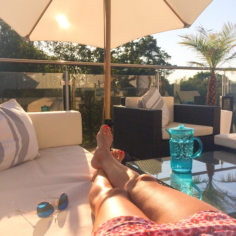 Grillning på taket. Inte länge sen vi hade julbelysningen här som lös och en meter snö som låg. Möblerna undan plockade och minusgrader. Jag är verkligen mer sommartjej. Älskar att ligga här uppe, och när tom jag drar upp parasollet och svalkar mig i skuggan, då är det varmt.:)