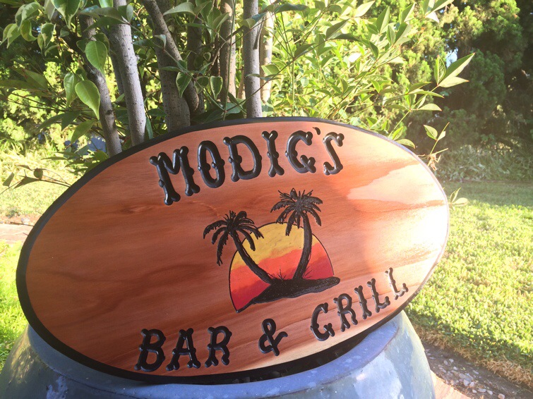 Modigs Bar & Grill 27 jul 2014 av Therése Modig Nu haft smygpremiär, Modigs Bar & Grill! Då vi beställde en skylt,handgjord från L.A. Visade jag den när vi var där? Den sitter nu uppe på vår terass och större invigning kommer vänner! Be so sure!:)